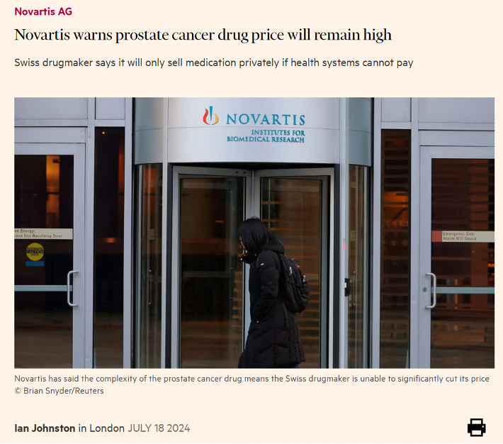In a recent article published in The Financial Times, Novartis’s Chief Financial Officer argued that the complexity of the product justified not lowering the price of Lutetium-177 PSMA-617 (priced at $42,500 per dose, with patients often receiving 6 doses).